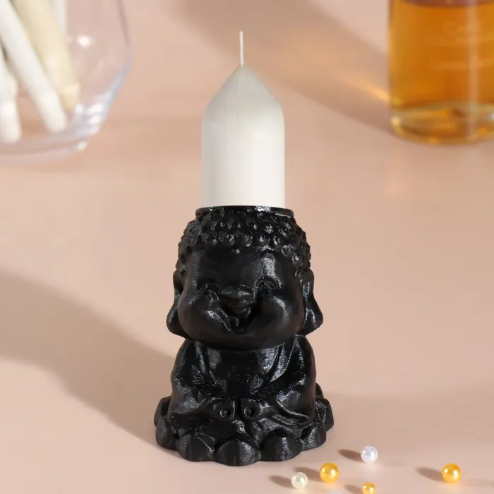 Декоративный подсвечник на 1 свечу «Будда», высота 7 см, d-2.4 см, чёрный — Характеристики