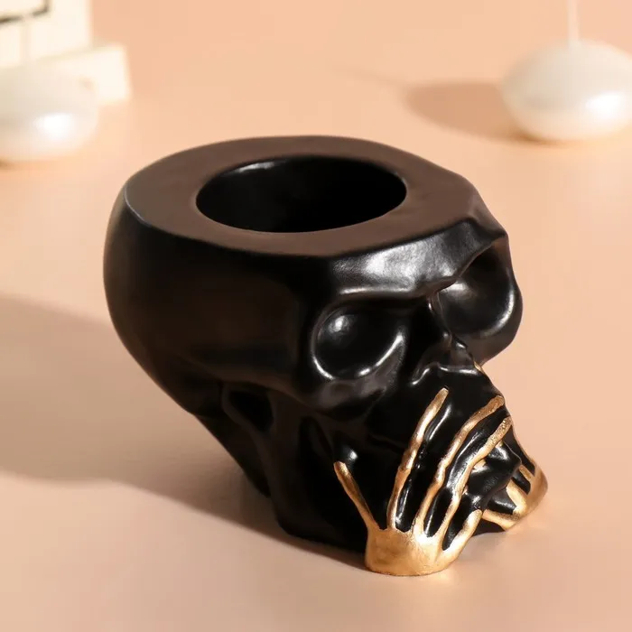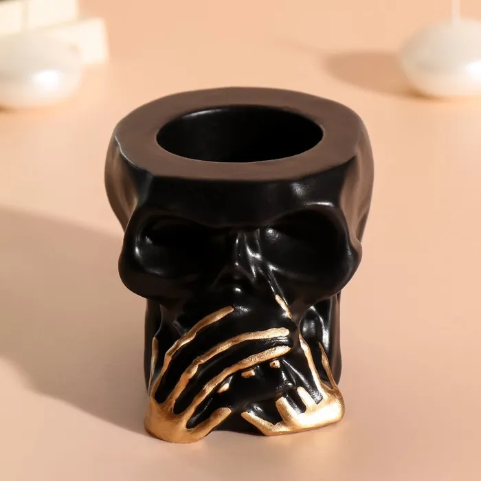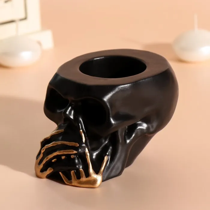 Декоративный подсвечник на 1 свечу «Череп Безмолвие», 7×10 см, чёрный с золотыми пальцами