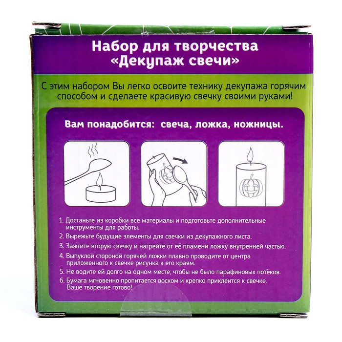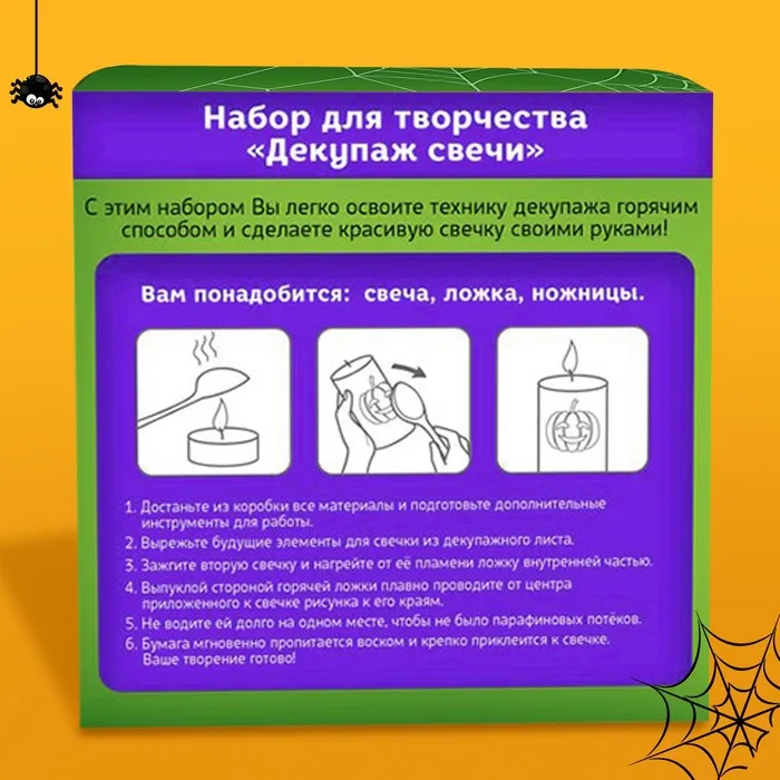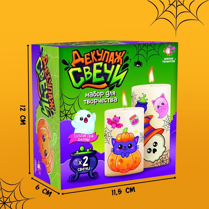 С этим набором вы легко освоите технику декупажа горячим способом и сделаете красивую свечку своими руками. А готовые творения украсят интерьер для празднования Хэллоуина!