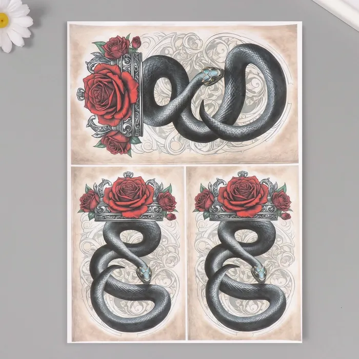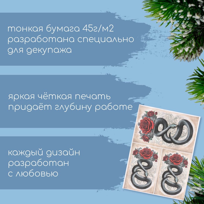 Декупажная карта «Чёрная змея и роза», плотность 45 г/м², формат А4 — Характеристики