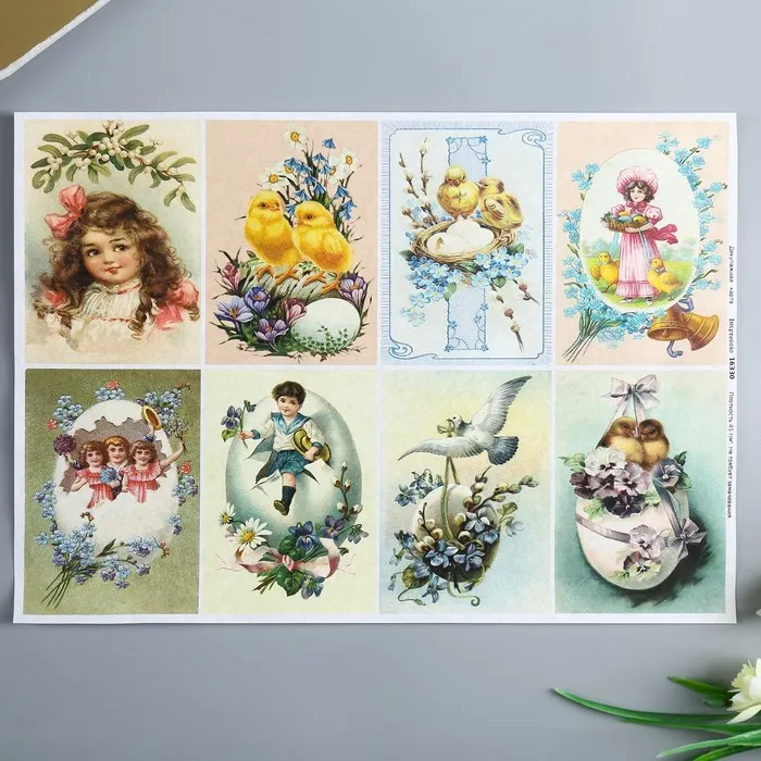 Декупажная карта «Дети и цыплята», плотность 45 г/м², формат А4 — Характеристики