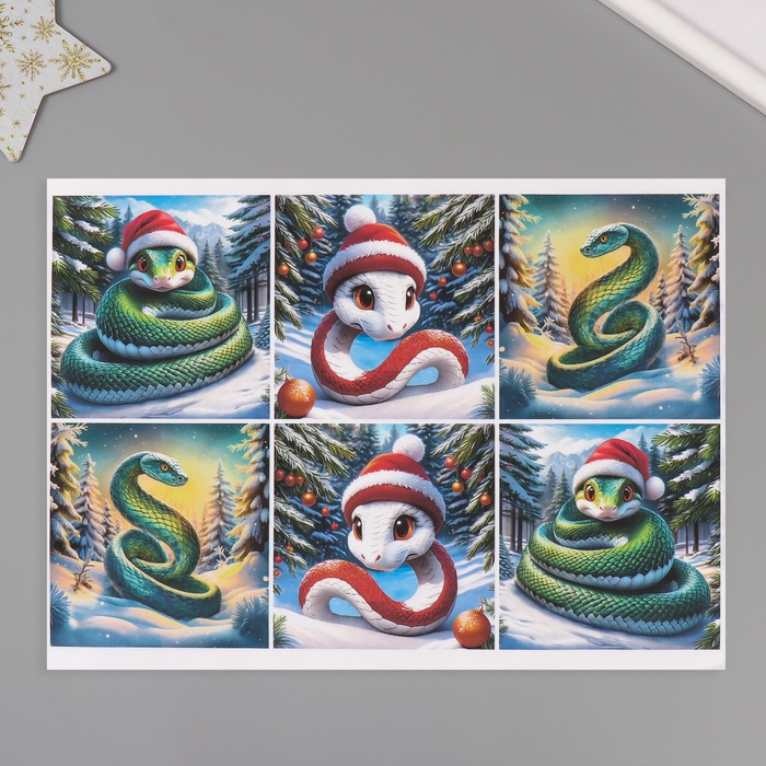 Декупажная карта «Новогодние змеи. Нейросеть», плотность 45 г/м², формат А4