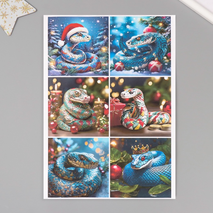 Декупажная карта «Новогодние змеи», плотность 45 г/м², формат А4