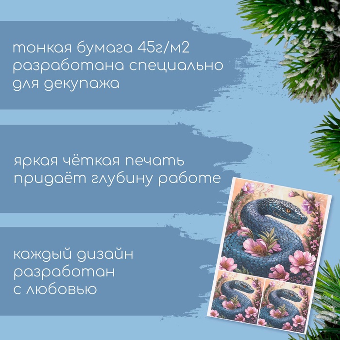 Декупажная карта «Питон с цветами», плотность 45 г/м², формат А4 — Характеристики