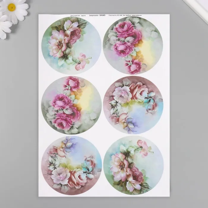 Рисовая декупажная карта «Разные букеты», А4, 25 г/м²