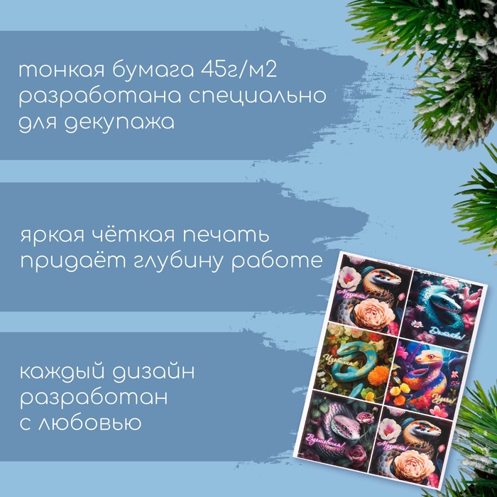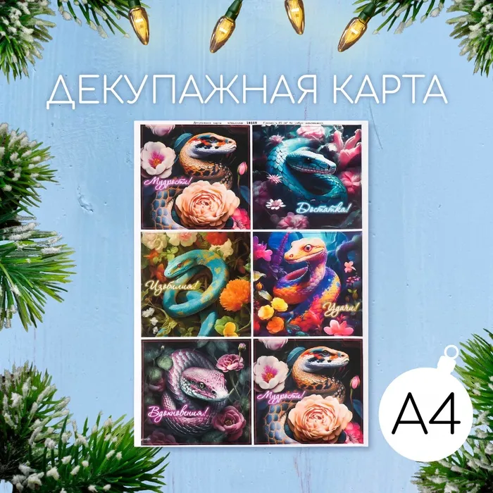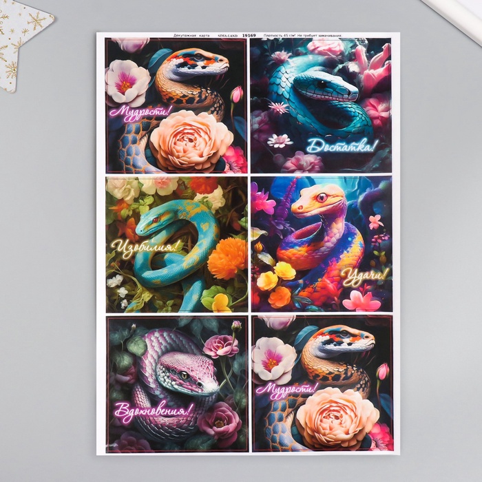 Декупажная карта «Змеи. Пожелания», формат А4, плотность 45 г/м²