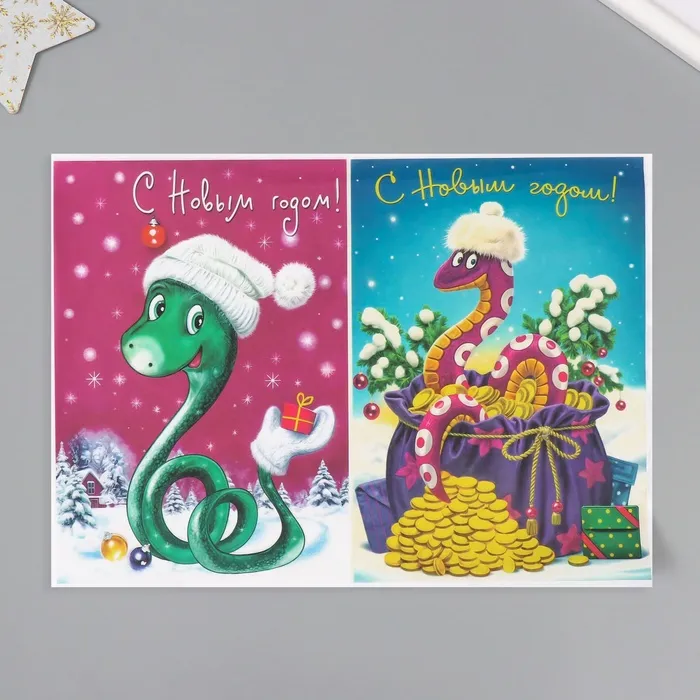Декупажная карта «Змея. С Новым Годом!», плотность 45 г/м², формат А4 — Характеристики