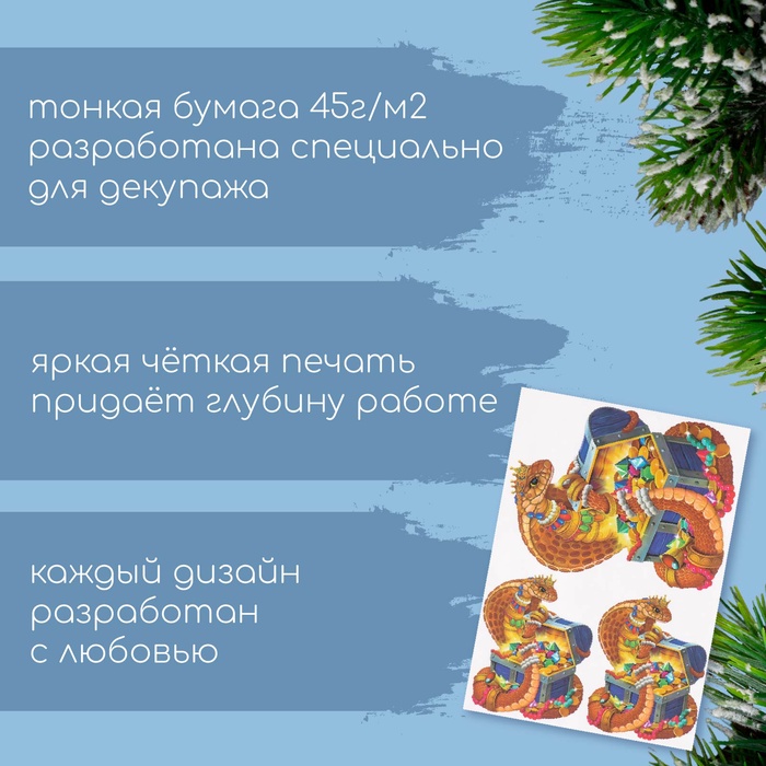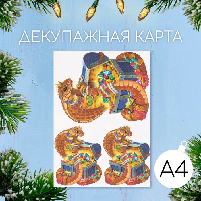 Декупажная карта «Змея с сундуком», плотность 45 г/м², формат А4 — Характеристики