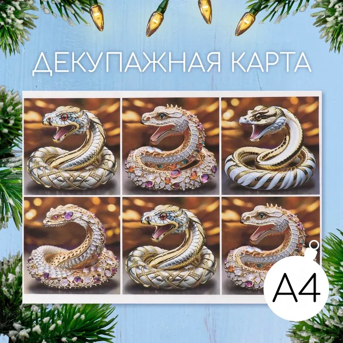 Декупажная карта «Змея в драгоценностях», плотность 45 г/м², формат А4 — Характеристики