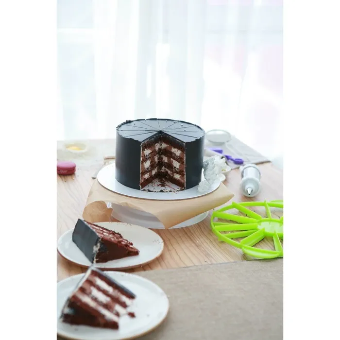 Приспособление поможет ровно разделить десерт на 10 или 12 частей.