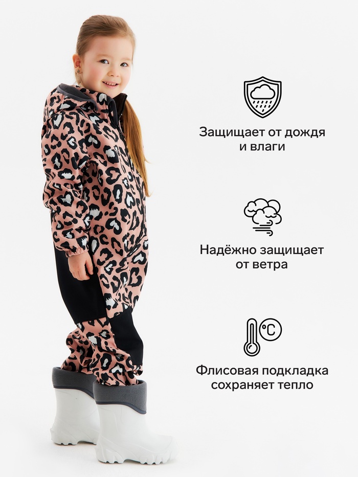 Костюм прекрасно подходит для ежедневных приключений, обеспечивая защиту и стиль даже непогодe. Леопардовый дизайн привлечет взгляды и сделает каждую прогулку ярче и интереснее.