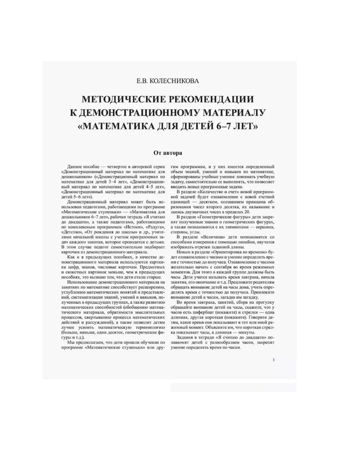 Данное пособие — четвертое в авторской серии «Демонстрационный материал по математике для дошкольников» («Демонстрационный материал по математике для детей 3-4 лет», «Демонстрационный материал по математике для детей 4-5 лет», «Демонстрационный материал по математике для детей 5-6 лет»).