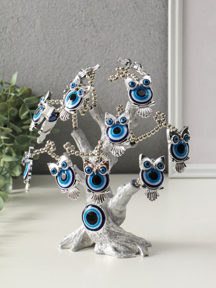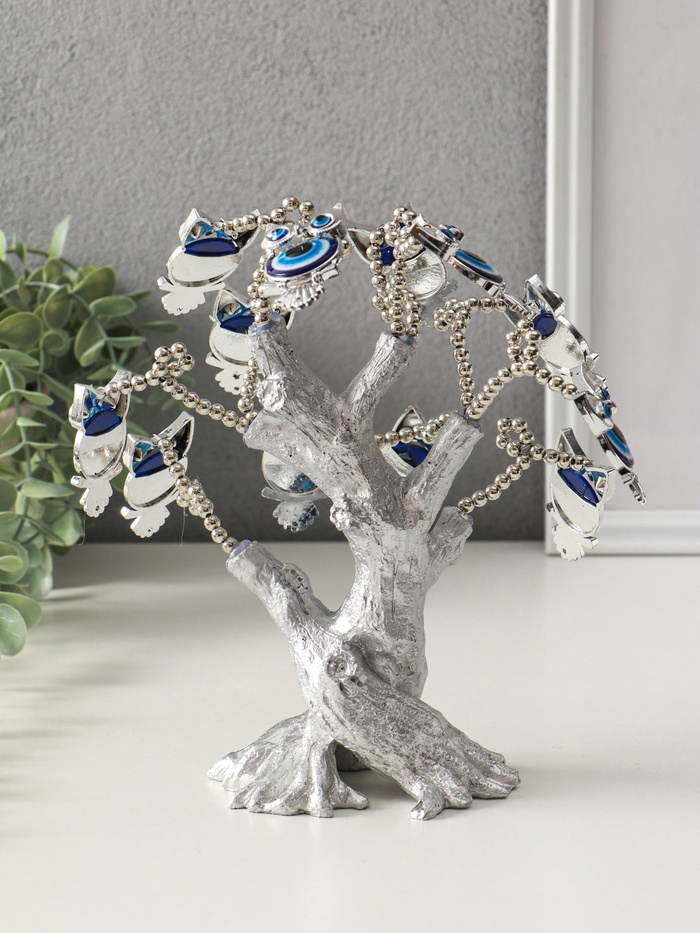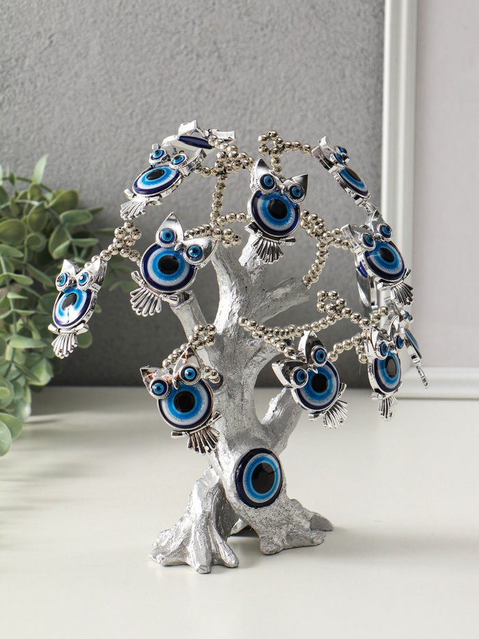 Денежное дерево декоративное «Бонсай от сглаза. Дерево с филинами», под серебро, 17.5×6.5×23 см — Характеристики