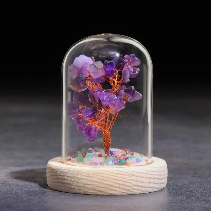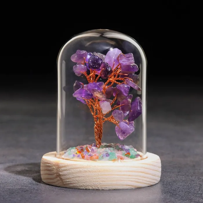 Денежное дерево декоративное «Сувенир бонсай в куполе. Мудрости. Аметист», натуральный камень, 10×7 см — Характеристики
