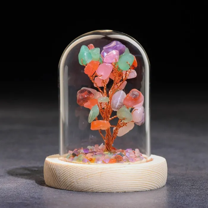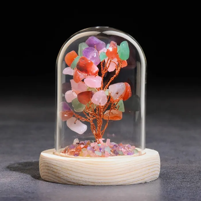 Денежное дерево декоративное «Сувенир бонсай в куполе. Жизнь. Самоцветы», натуральный камень, 10×7 см — Характеристики