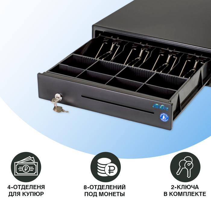 Этот денежный ящик оснащён несколькими отделениями для монет и купюр, что позволяет удобно распределять наличные средства, упрощая процессы подсчёта и хранения денег. Механизм открывания работает с высокой точностью и легко интегрируется с другими компонентами кассового оборудования, обеспечивая безопасность и оперативность в работе.