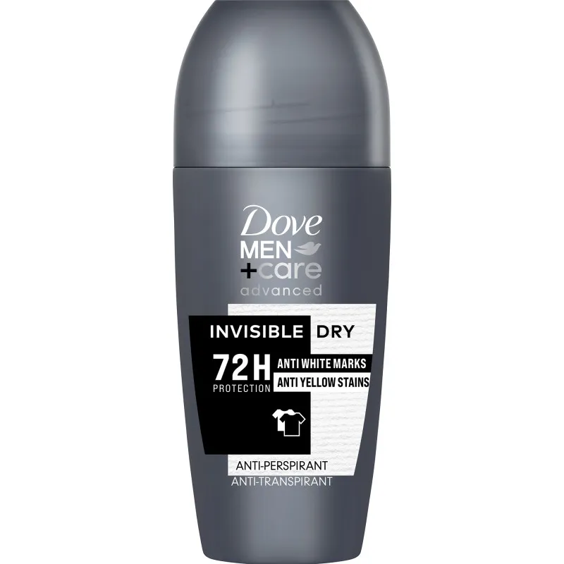 Dove Men+Care Invisible Dry — это антиперспирант в формате ролика, который предотвращает потоотделение до 72 часов. Дезодорант не оставляет белых или желтых пятен на одежде. Формула антиперспиранта содержит ¼ увлажняющей технологии, которая помогает защитить кожу и уменьшить раздражение.