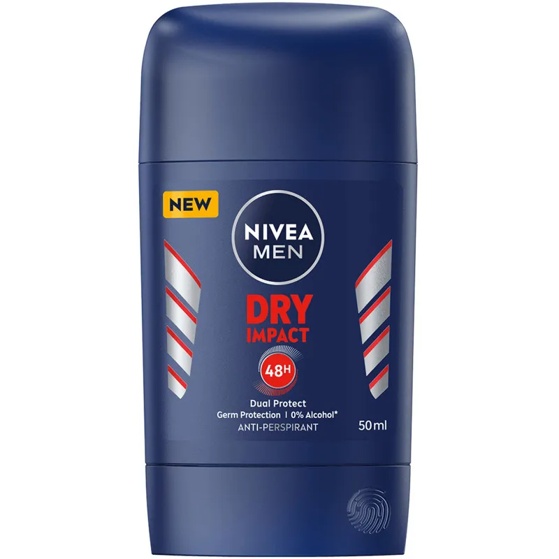 Nivea Men Dry Impact Stick – это антиперспирант, который обеспечивает эффективную и надежную защиту от пота до 48 часов. Его деликатная и ухаживающая формула гарантирует комфортное ощущение сухости и свежести на весь день. Содержит два активных антиперспирантных компонента и имеет приятный мужской аромат. Удобный формат стика делает его идеальным спутником в поездках, так как его не нужно упаковывать в отделение для жидкостей. Упаковка подлежит переработке. Объем упаковки 50 мл. Мы постоянно обновляем информацию о продукте, однако рекомендуем всегда проверять данные на упаковке.