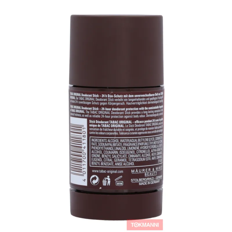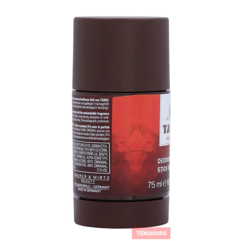 Tabac Original Stick - дезодорант для мужчин, которые ценят яркий и пряный аромат. Этот дезодорант обладает мужским ароматом, бережно ухаживает за кожей и представлен в экономичной упаковке объемом 75 мл. Мы постоянно обновляем информацию о наших продуктах, но рекомендуем всегда проверять данные на упаковке.