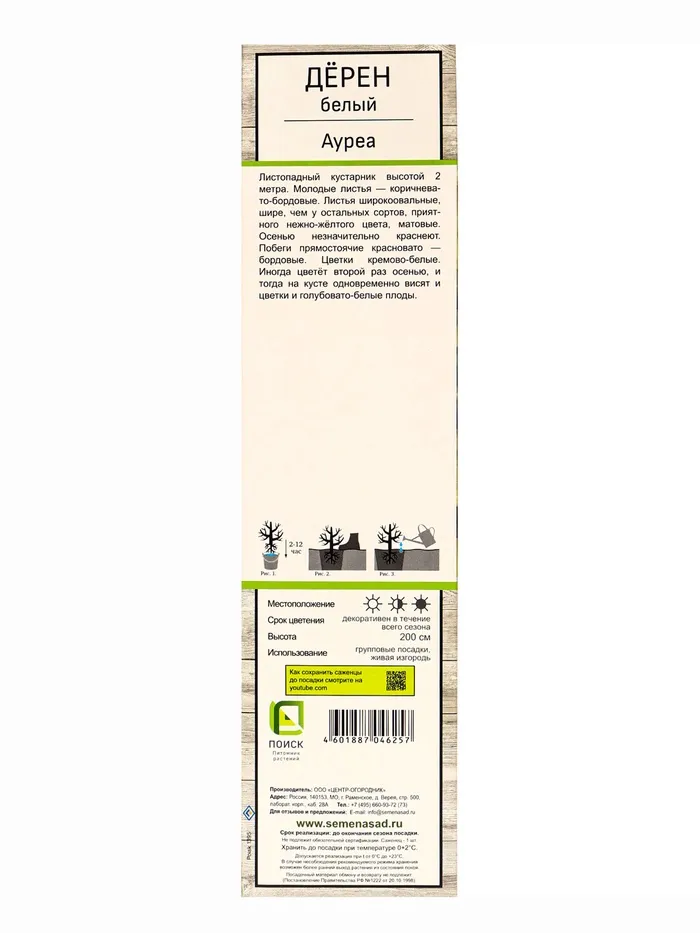 Дерен белый «Ауреа», саженец, декоративный, 1 шт., туба — Характеристики