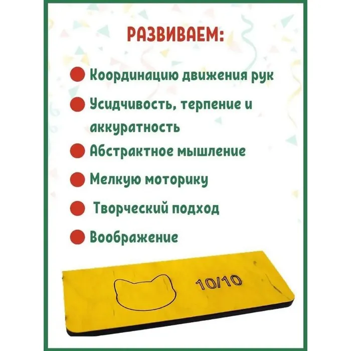 - Тренирует мелкую моторику, координацию и ловкость.