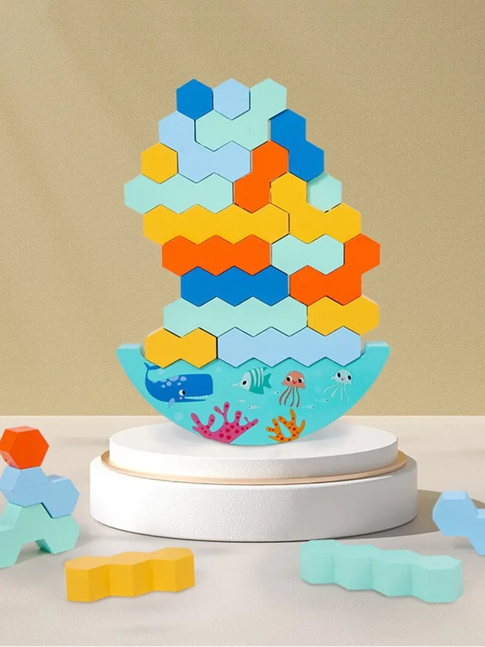 Во время игры ребёнок учится балансировать элементы на основе, развивая чувство равновесия. Это занятие помогает тренировать терпение, усидчивость и мелкую моторику.