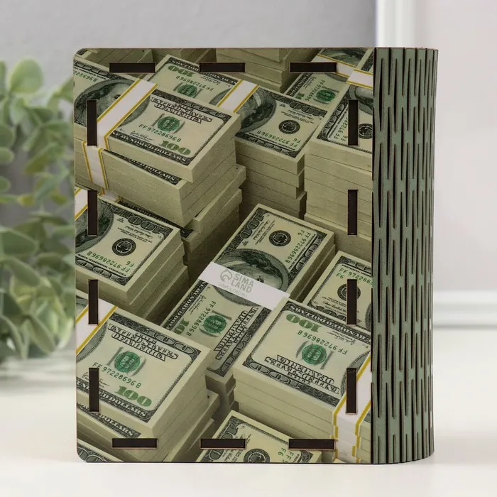 Деревянная книга-копилка для денег «Деньги», для купюр, монет, 14×12×5 см — Характеристики