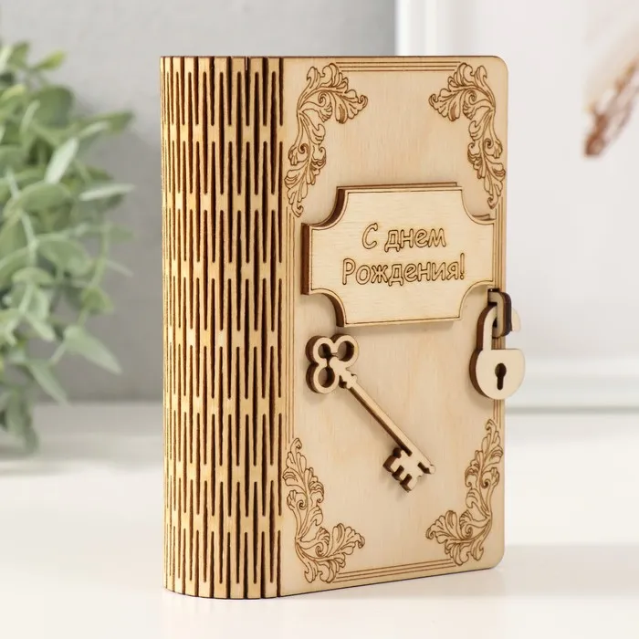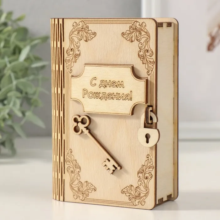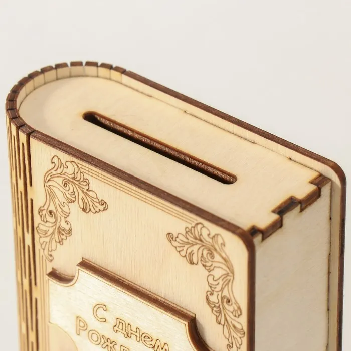 Деревянная книга-копилка для денег «С днём Рождения!», для купюр, монет, 13.5×9×4.5 см — Характеристики