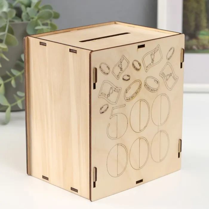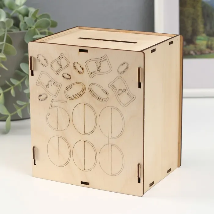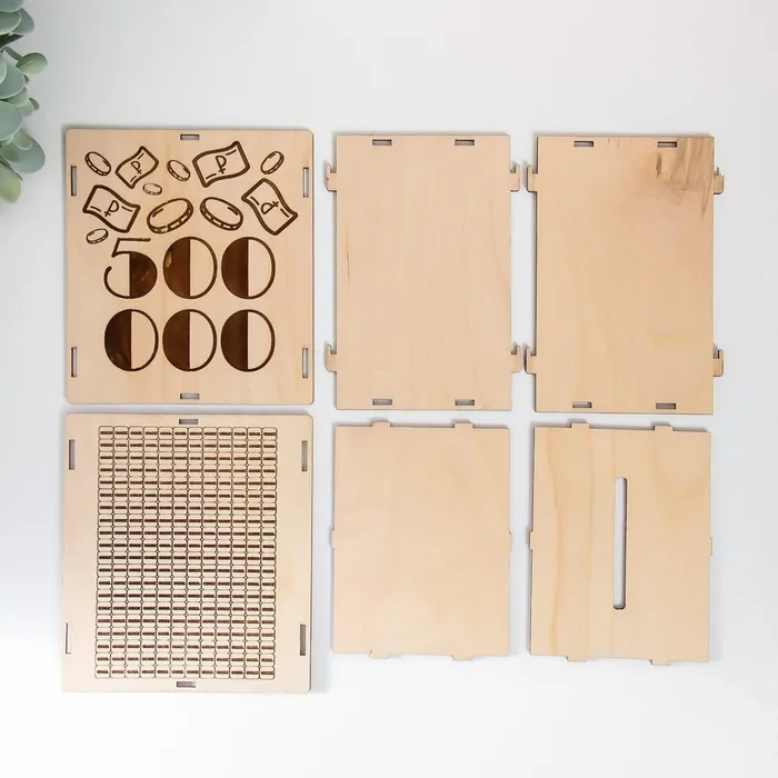 Деревянная копилка для денег «500 000 р», заготовка для купюр, монет, 13.4×10×15 см, набор 6 деталей — Характеристики