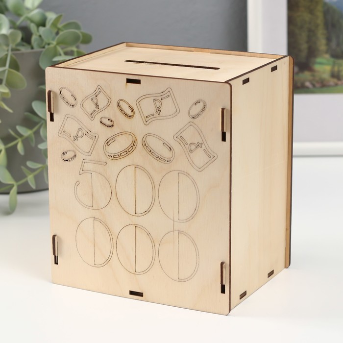 Деревянная копилка для денег «500 000 р», заготовка для купюр, монет, 13.4×10×15 см, набор 6 деталей