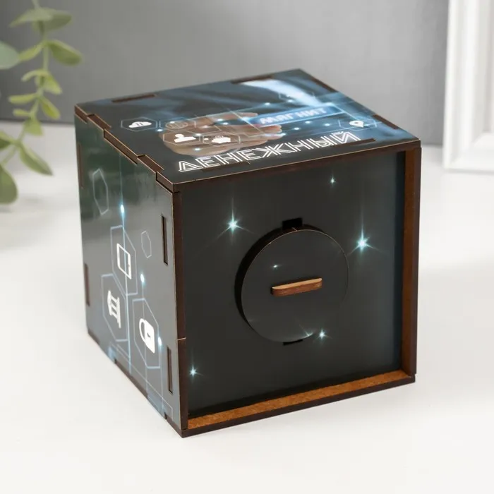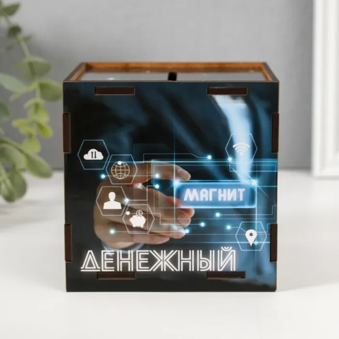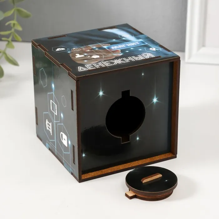 Деревянная копилка для денег «Денежный магнит», куб, с надписью, 10×10х10 см — Характеристики