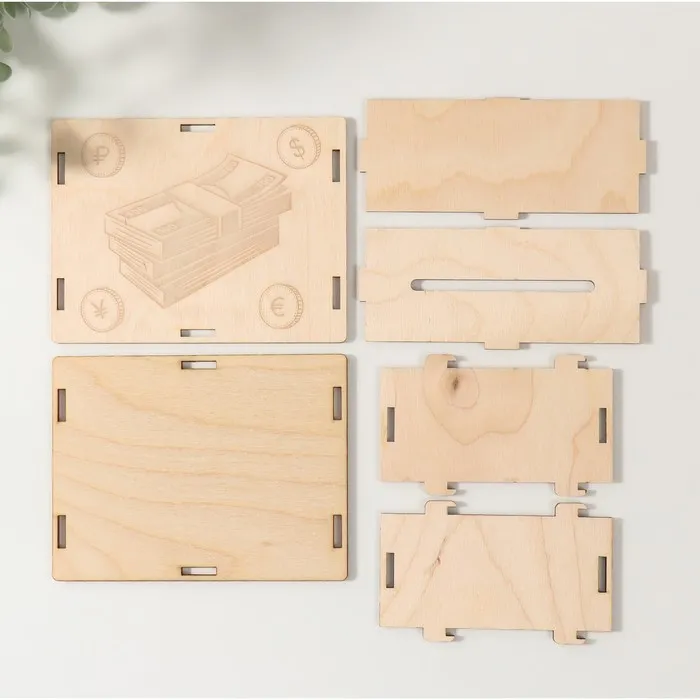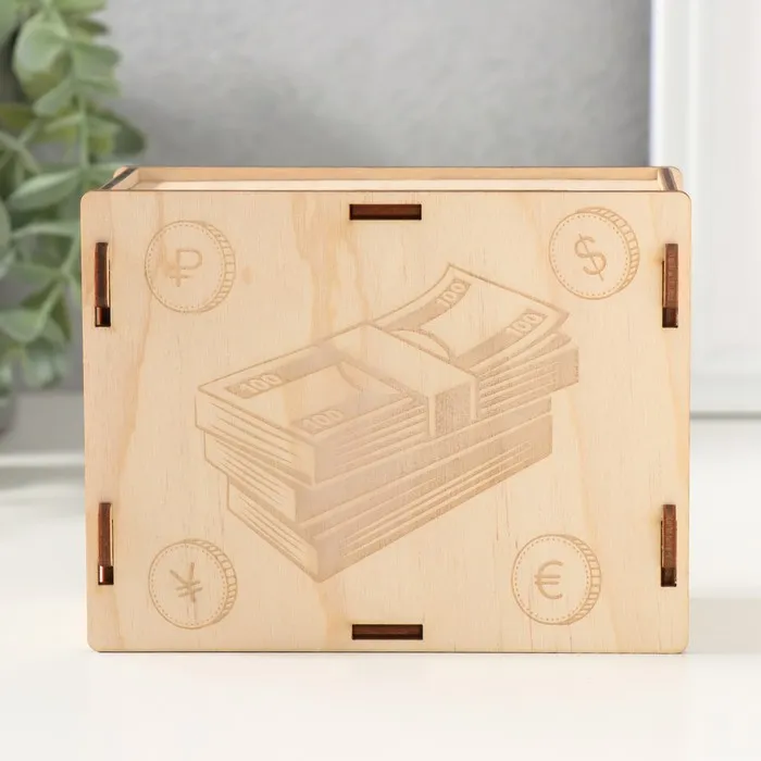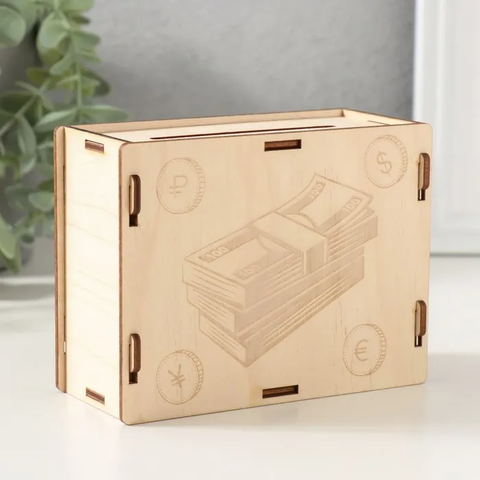 Деревянная копилка для денег «Деньги», заготовка, для купюр, монет, 13×10×5 см, набор 6 деталей — Характеристики