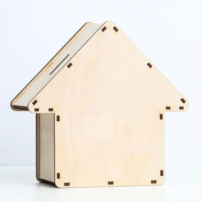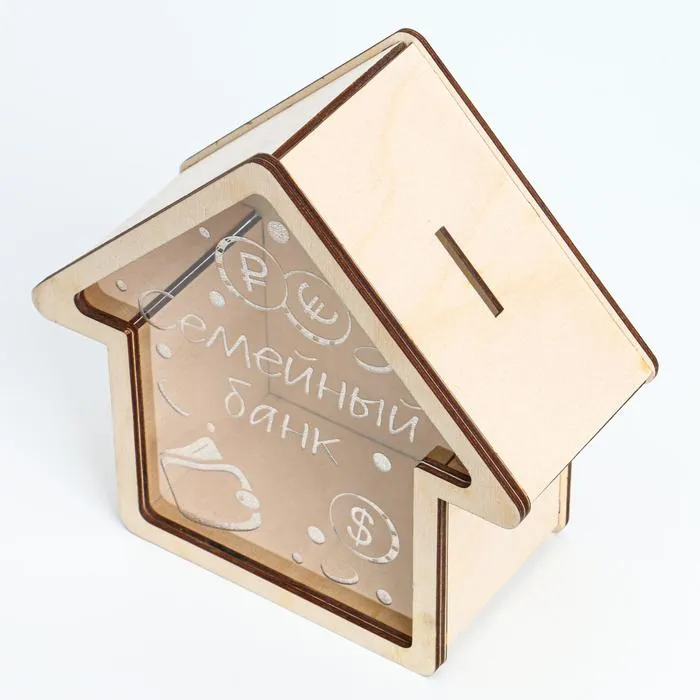 Деревянная копилка для денег «Дом», заготовка со вставкой и гравировкой, 20.5×20×9 см — Характеристики
