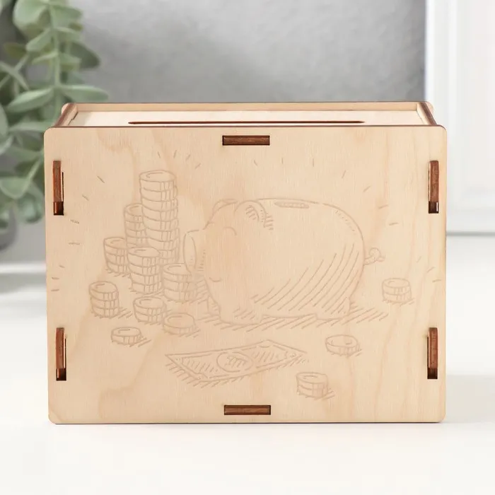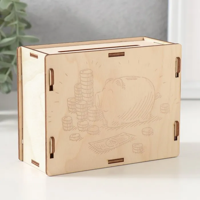 Деревянная копилка для денег «Копилка свинка», заготовка, для купюр, монет, 13×10×5 см, набор 6 деталей — Характеристики