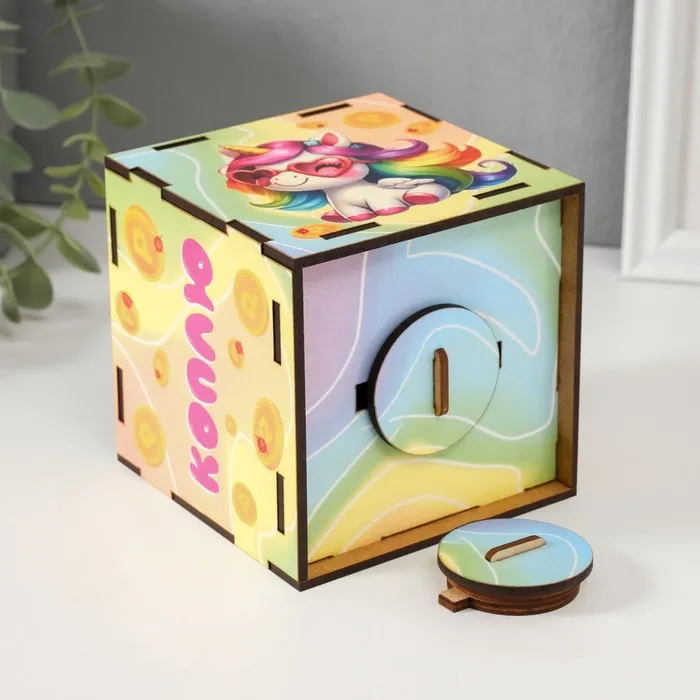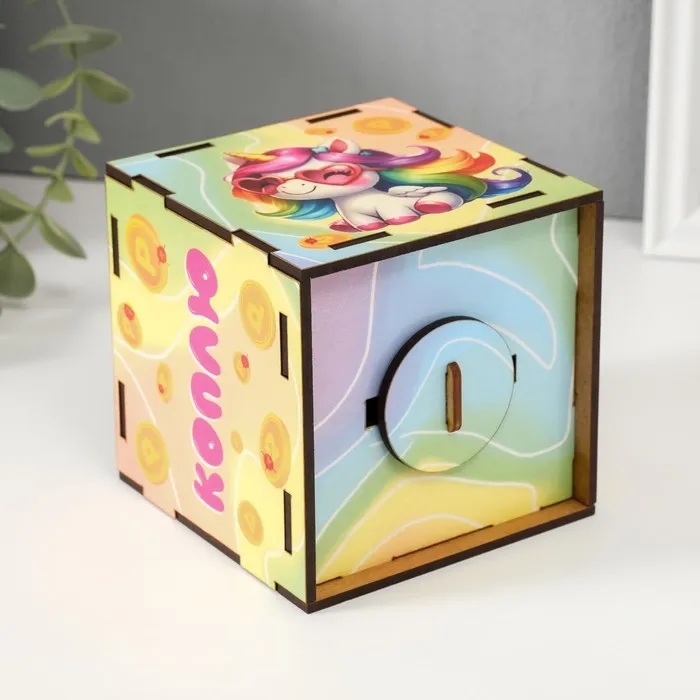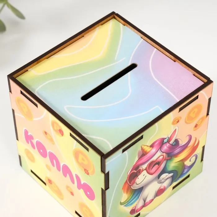 Деревянная копилка для денег «Коплю на сказку», куб, с надписью, 10×10х10 см — Характеристики