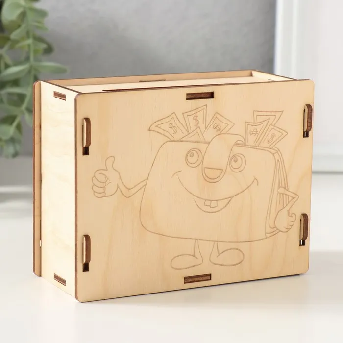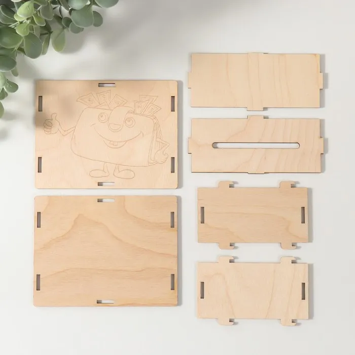 Деревянная копилка для денег «Кошелёк», заготовка, для купюр, монет, 13×10×5 см, набор 6 деталей