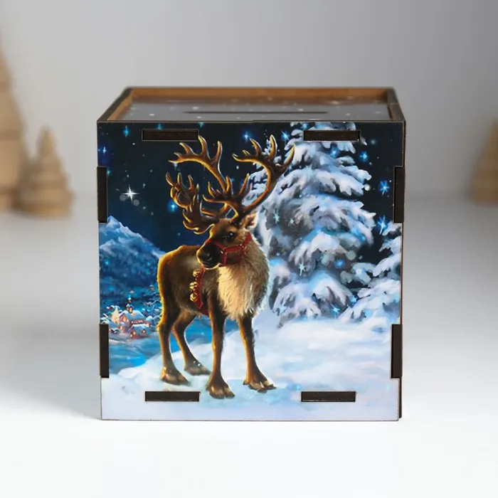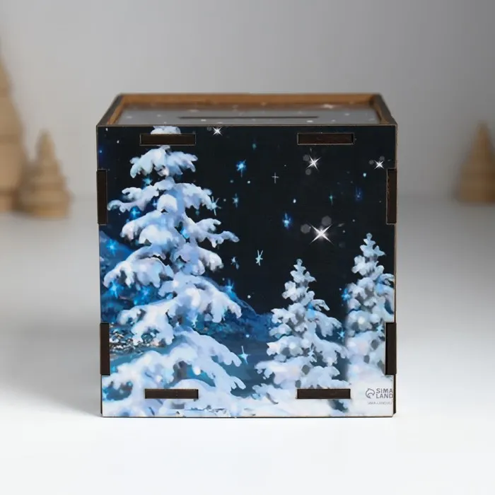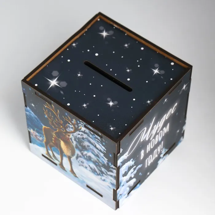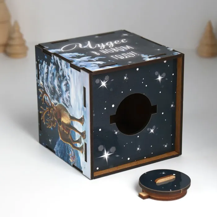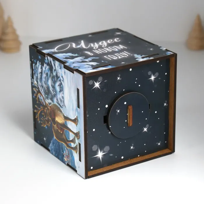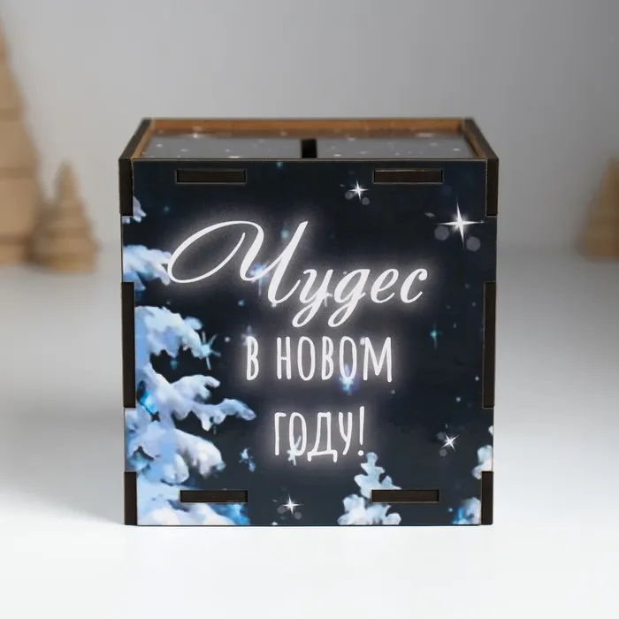 Деревянная копилка для денег «Куб. Чудес в НГ», 10×10×10 см — Характеристики