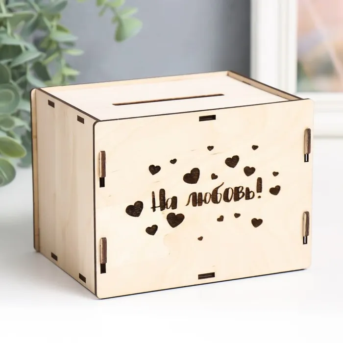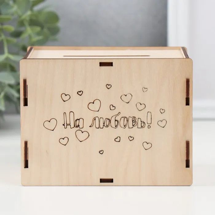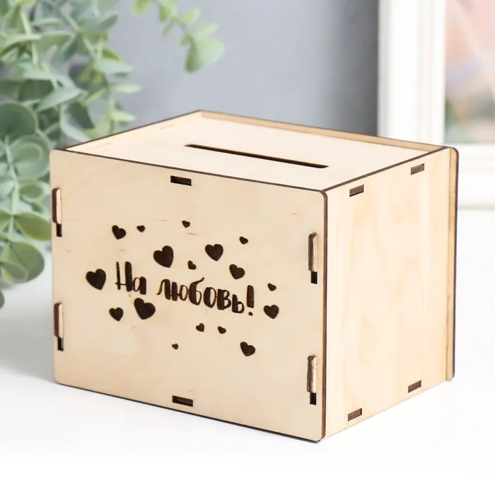 Собранная из натуральной фанеры, эта копилка сочетает экологичность с простотой декорирования. Чёткие линии и лаконичная форма делают её идеальным холстом для творчества — будь то роспись, декупаж или аппликация. А трогательная надпись «На любовь» добавит особого шарма вашему подарку.