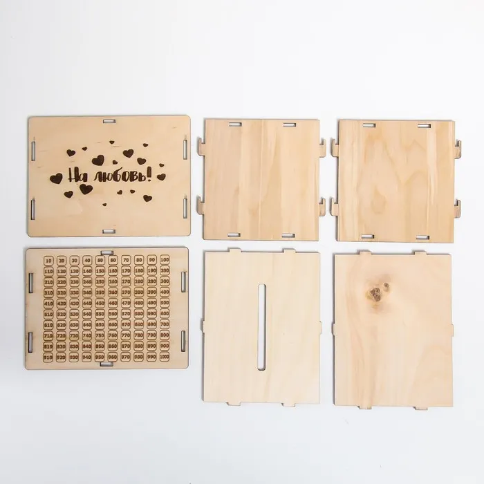 Деревянная копилка для денег «На любовь», заготовка для творчества, 13.4×10×10 см, набор 6 деталей, МИКС — Характеристики