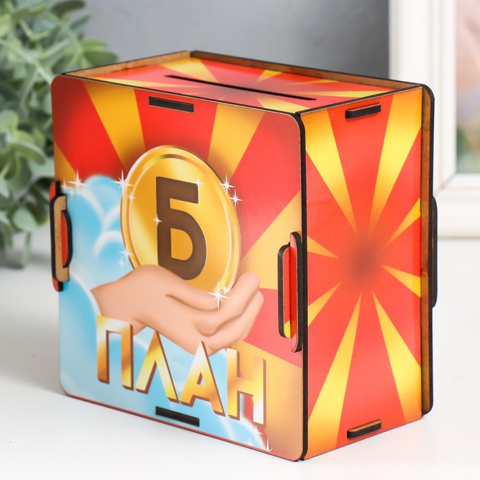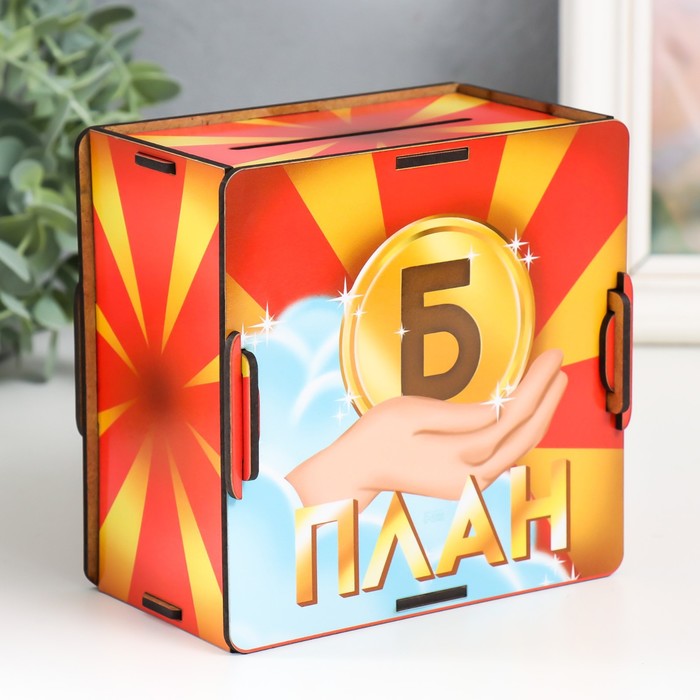 Деревянная копилка для денег «План Б», для купюр, монет, 14×14×8 см