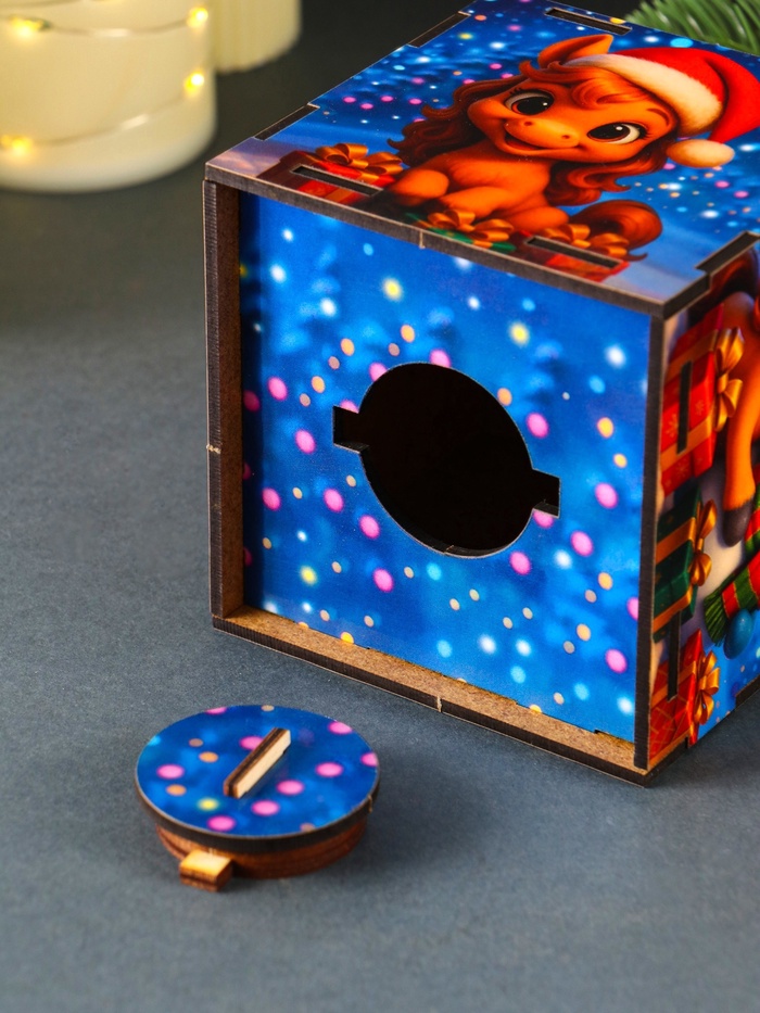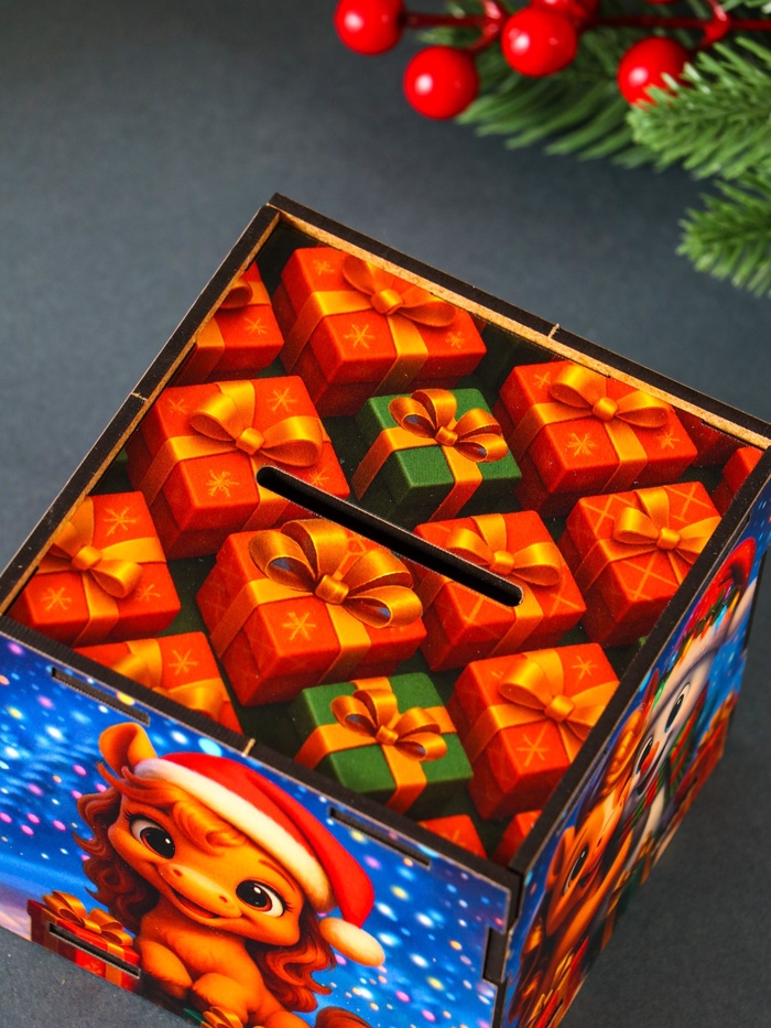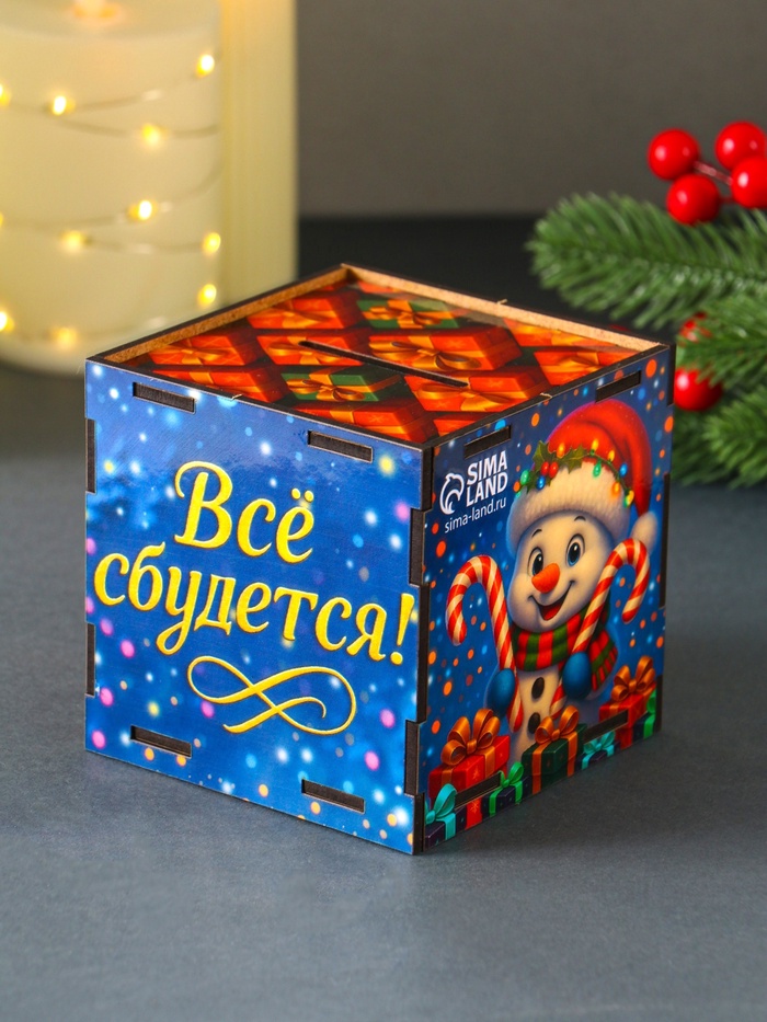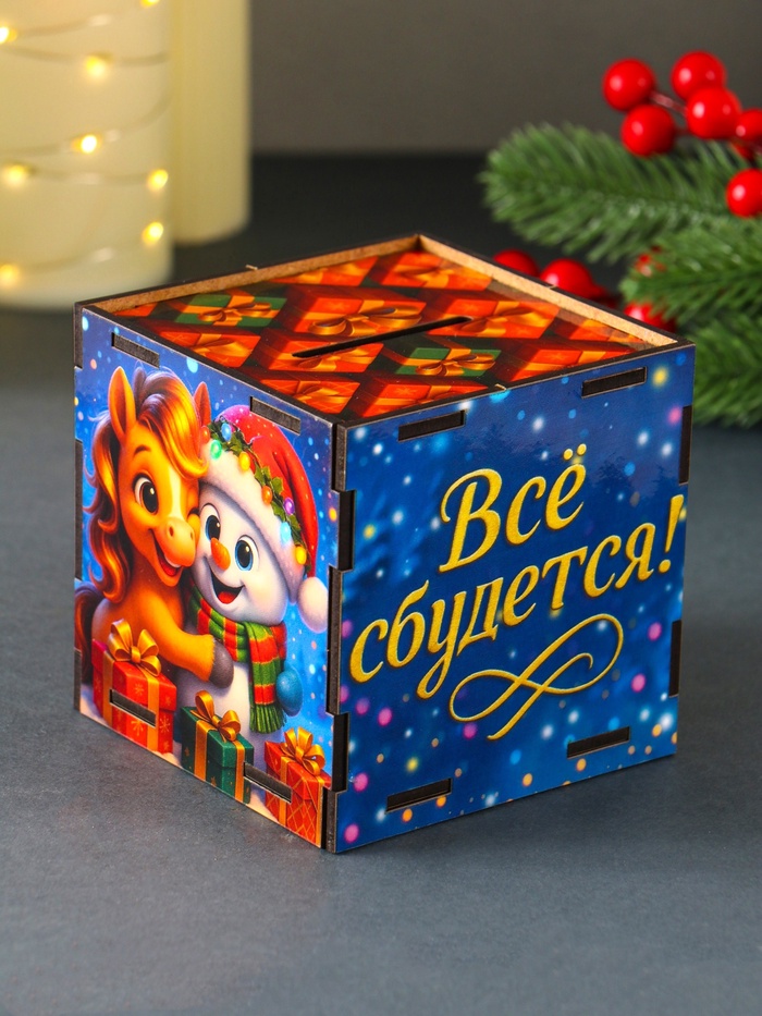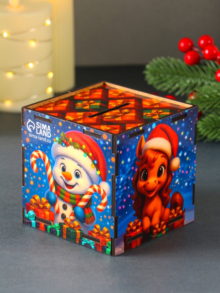 Куб «Новогодний снеговик» — это уникальная деревянная копилка, которая станет стильным дополнением вашего интерьера и поднимет настроение в преддверии праздников. Яркие сюжетные изображения не только превращают её в прекрасный новогодний подарок, но и наполняют ощущением сказки и уюта.