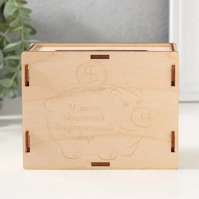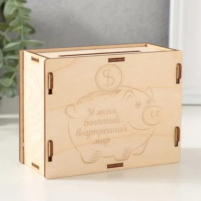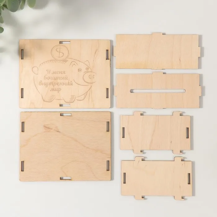 Деревянная копилка для денег «Свинка», заготовка, для купюр, монет, 13×10×5 см, набор 6 деталей — Характеристики