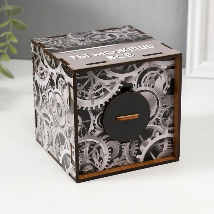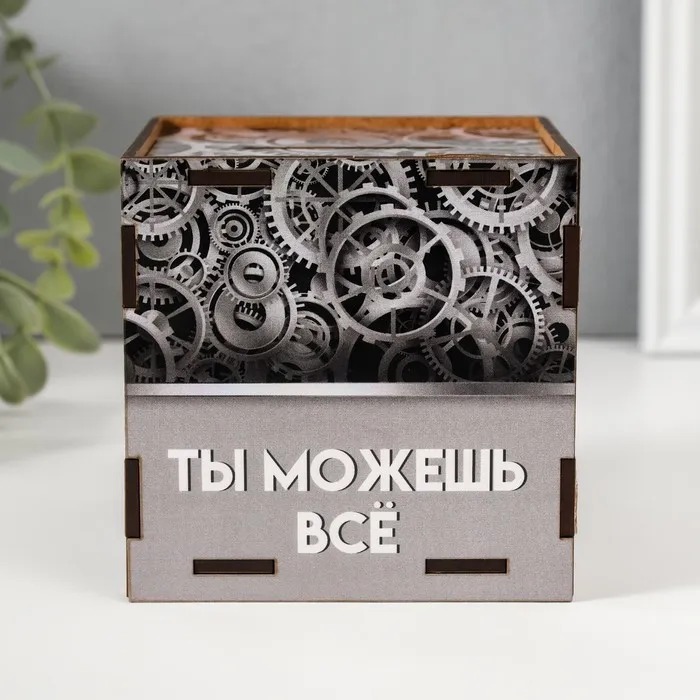 Деревянная копилка для денег «Ты можешь все», куб, с надписью, 10×10х10 см — Характеристики