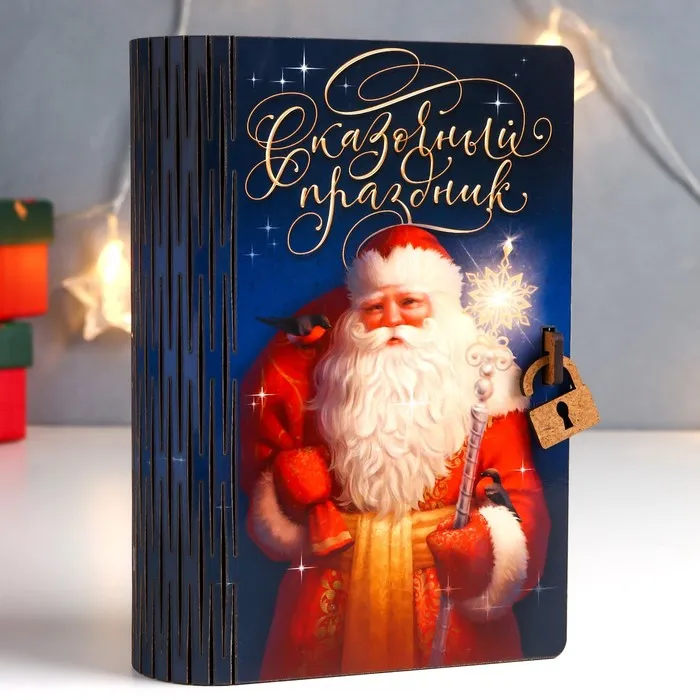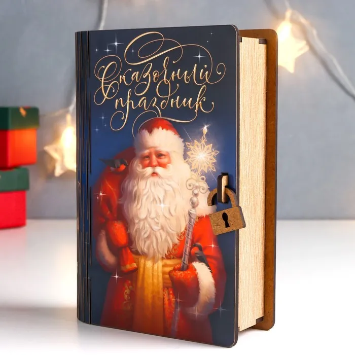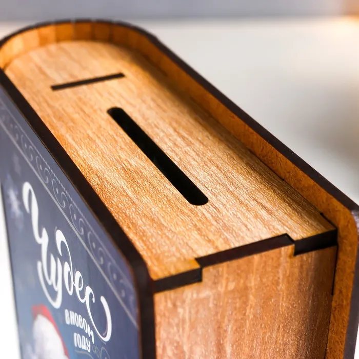 Деревянная копилка-книга для денег «Новогодний Дедушка Мороз», для купюр, монет, 13×10×5 см — Характеристики