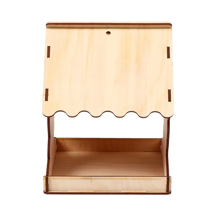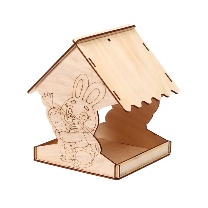 Чтобы собрать кормушку, аккуратно соедините фанерные детали, вставляя их в пазы. Используйте клей для лучшей фиксации. При желании модель можно раскрасить или задекорировать.