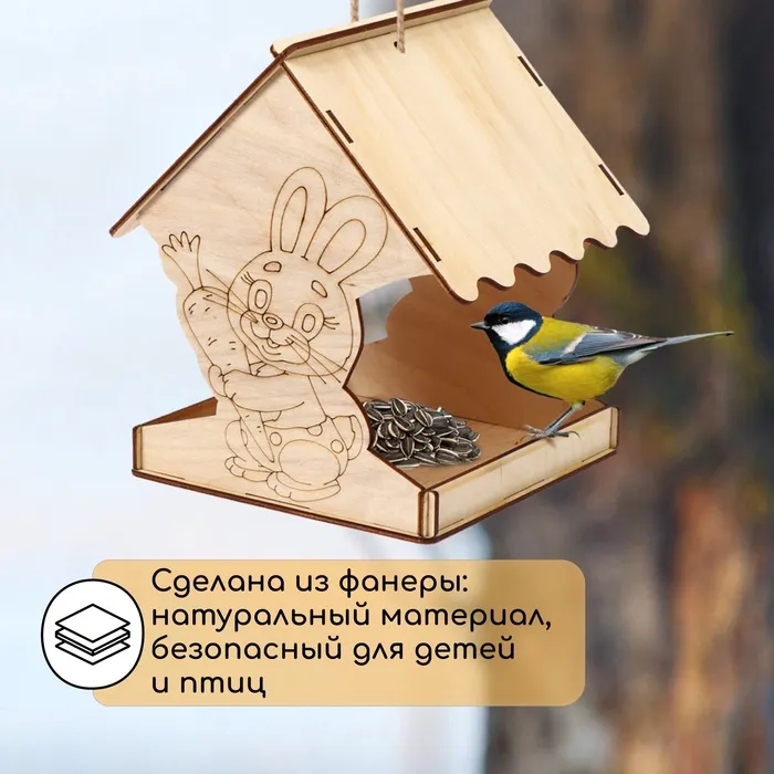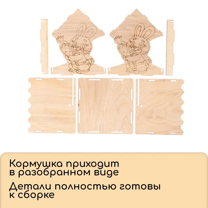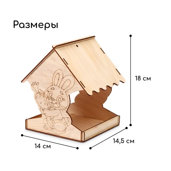Деревянная кормушка - конструктор для птиц «Заяц с морковкой», 14×14.5×18 см, Greengo — Характеристики