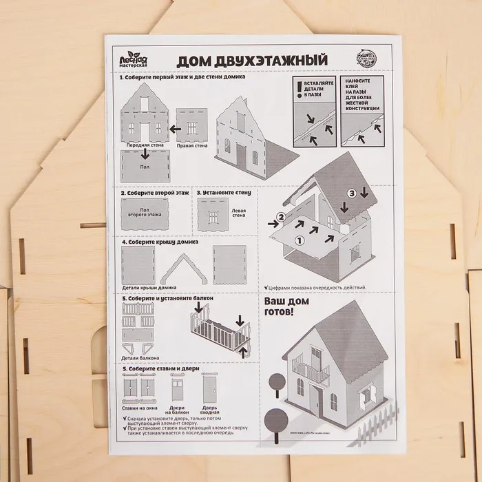- Дом выполнен из натурального дерева, что обеспечивает долговечность и экологичность игрушки.