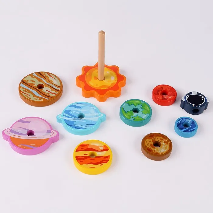 Деревянная пирамидка «Космос» — это увлекательная развивающая игрушка для детей от 3 лет. Она знакомит малыша с планетами солнечной системы, помогает изучать цвета, формы и размеры, а также развивает логику, моторику и пространственное мышление. В набор входит 10 элементов для сборки.