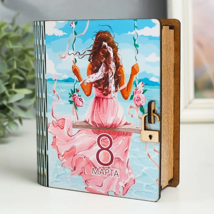Деревянная шкатулка-книга «8 марта. Качели» 14 см — Характеристики
