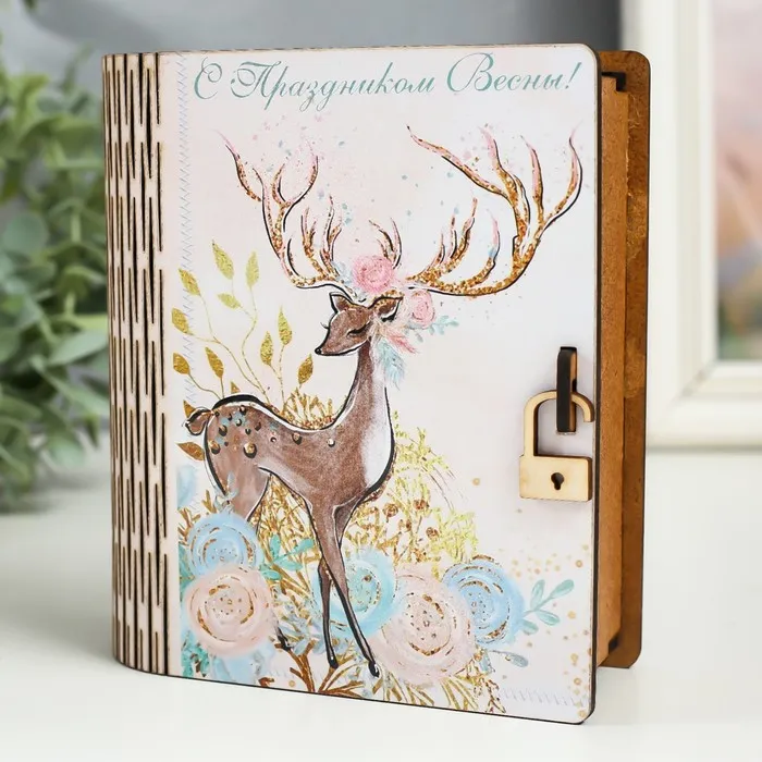 Деревянная шкатулка-книга «8 марта. Олень» 14 см — Характеристики
